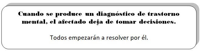 Relatos de obsesiones, de tristezas, de malestar psíquico y de incomprensiones, todo muy silente.  Perturbación psicológica que acaba en un dictamen clínico de enfermedad mental. Desde este momento chirrían todas las coordenadas, en la vida del afectado se va a producir un cambio que todavía no es capaz de apreciar. La etiqueta está puesta. Todo lo que ocurra a partir de ahora, aunque se considere normal en otros sujetos, se va a ligar al diagnóstico: la apatía, la  desesperanza, la rabia, la desilusión, el fracaso…